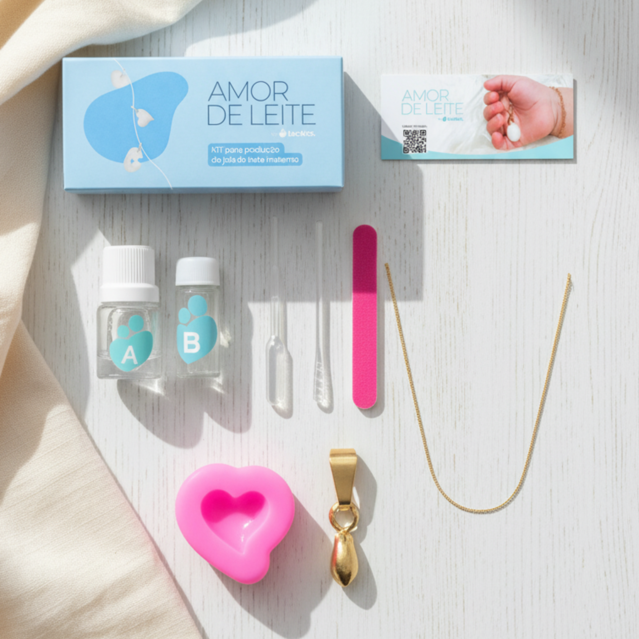 È un kit completo, pratico e sicuro che ti permette di creare il tuo gioiello con latte materno direttamente a casa, conservando il ricordo del tuo percorso di allattamento con le tue stesse mani, con i tuoi tempi e nel tuo modo.